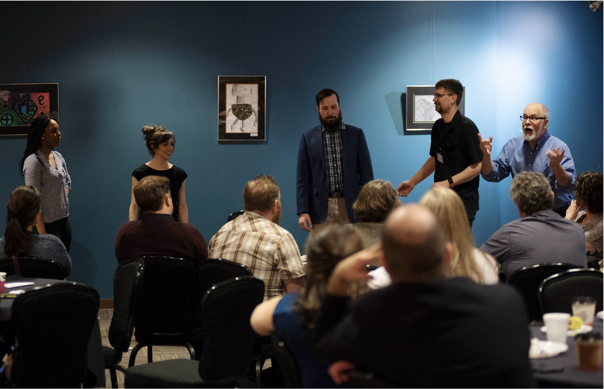 Located on the second floor, next to the Proctors administrative offices, the Fenimore Asset Management Gallery is a very flexible space, well-suited to art displays, birthday parties, baby showers, cocktail receptions, interactive conference sessions, and even small theatrical productions. The space is equipped with a speaker system and a projection system with a built-in screen. A glass wall allows the space to overlook the Wright Family Atrium, which usually houses a large-scale art project created by regional school districts.